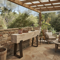 HEAVY solid timber log console table in a light bleached colour with sturdy iron legs. Weighs 75kg.