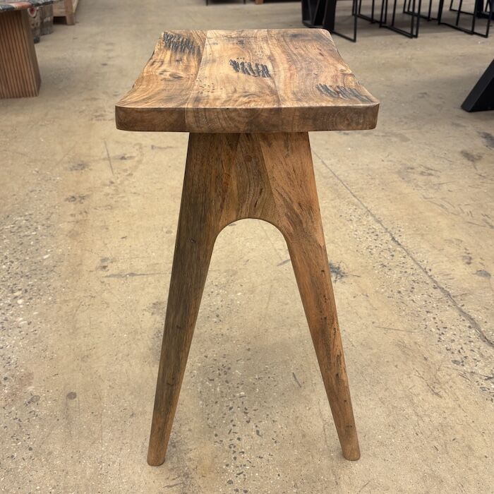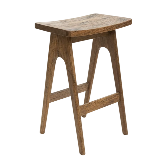 Sturdy, solid timber stool with a rustic finish on the mango wood. Suitable height for standard kitchen counters.
