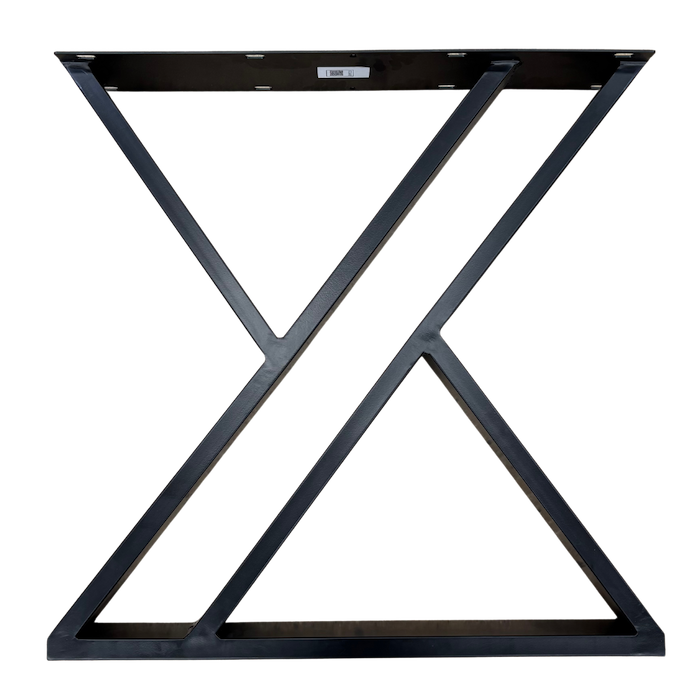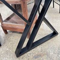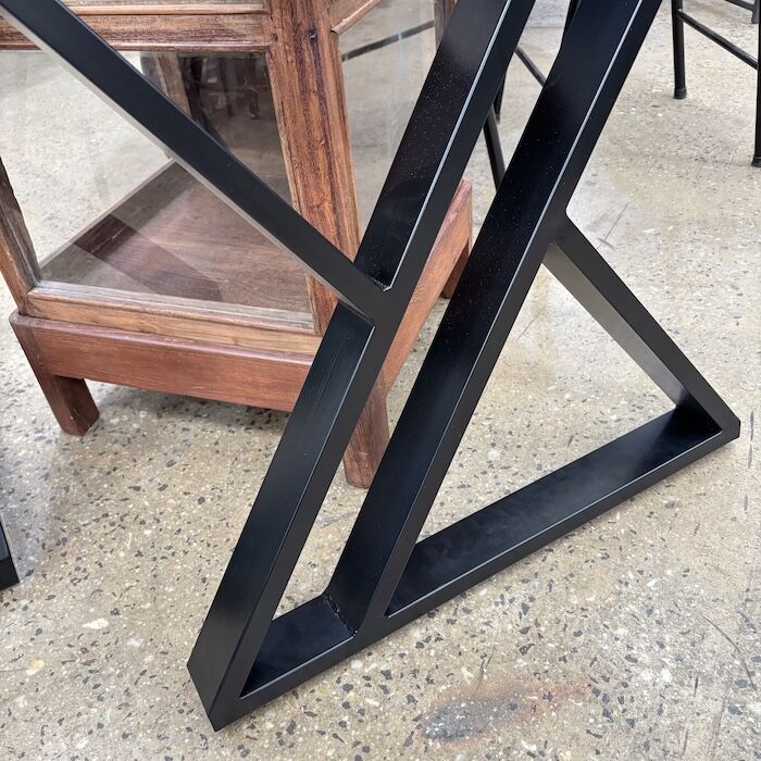Black powder coated iron table base in a double Y design. Comes as a pair of 2 legs.