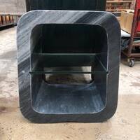 Magnificent side tables cut from a single piece of solid black marble with glass shelf - a breathtaking feature in any room and totally unique. Marble grain & colour varies on each bedside.