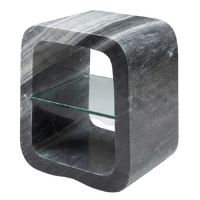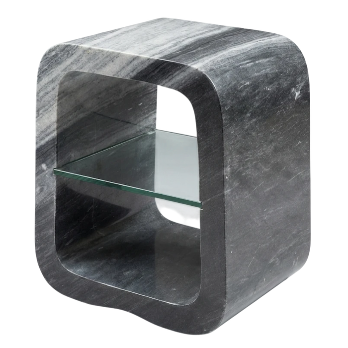 SOLID MARBLE SIDE TABLE WITH GLASS SHELF